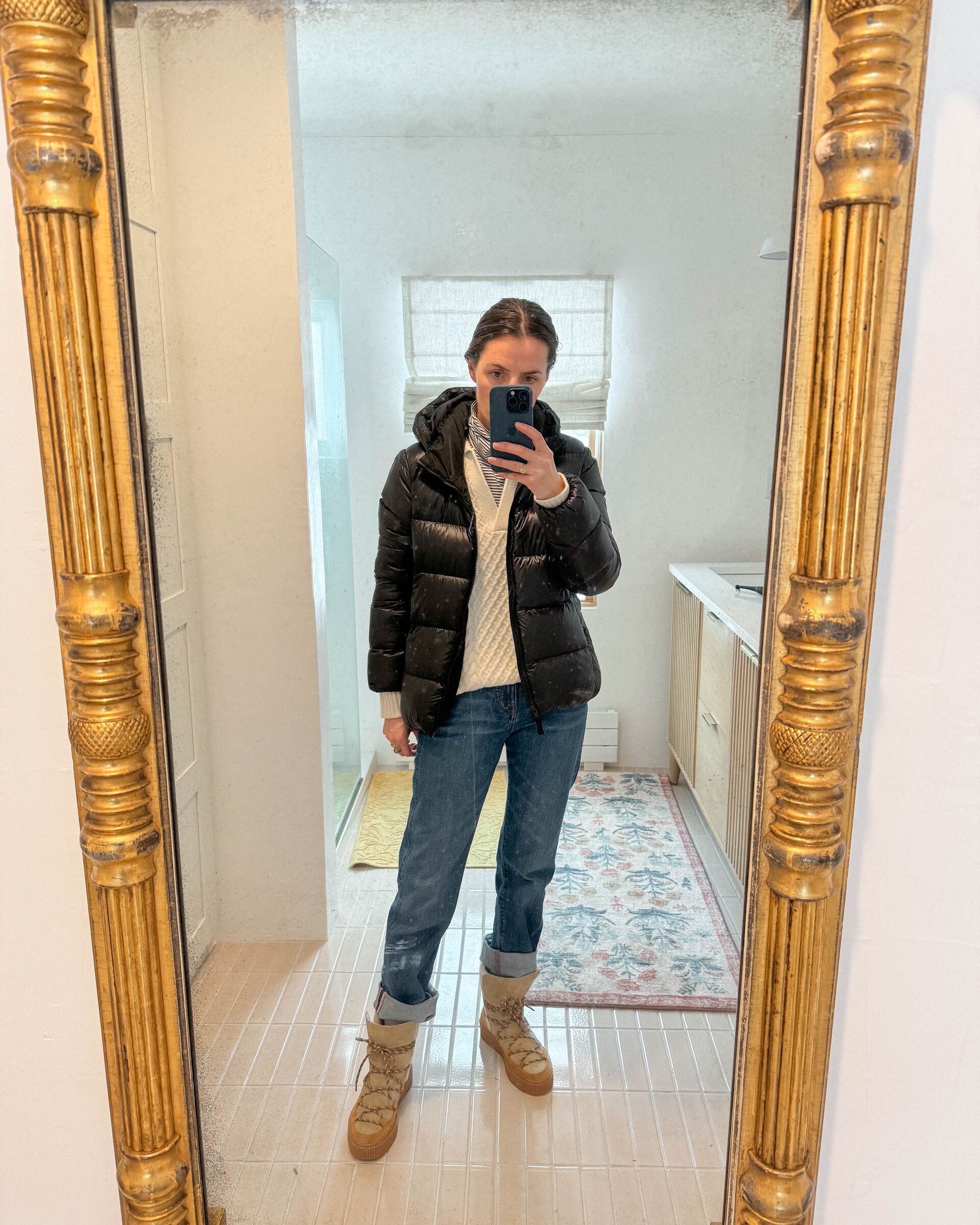 Wearing: Patagonia Jacket (this is an older version), Aritzia Sweater, Talbots Turtleneck (old), Madewell Jeans, Sézane Boots