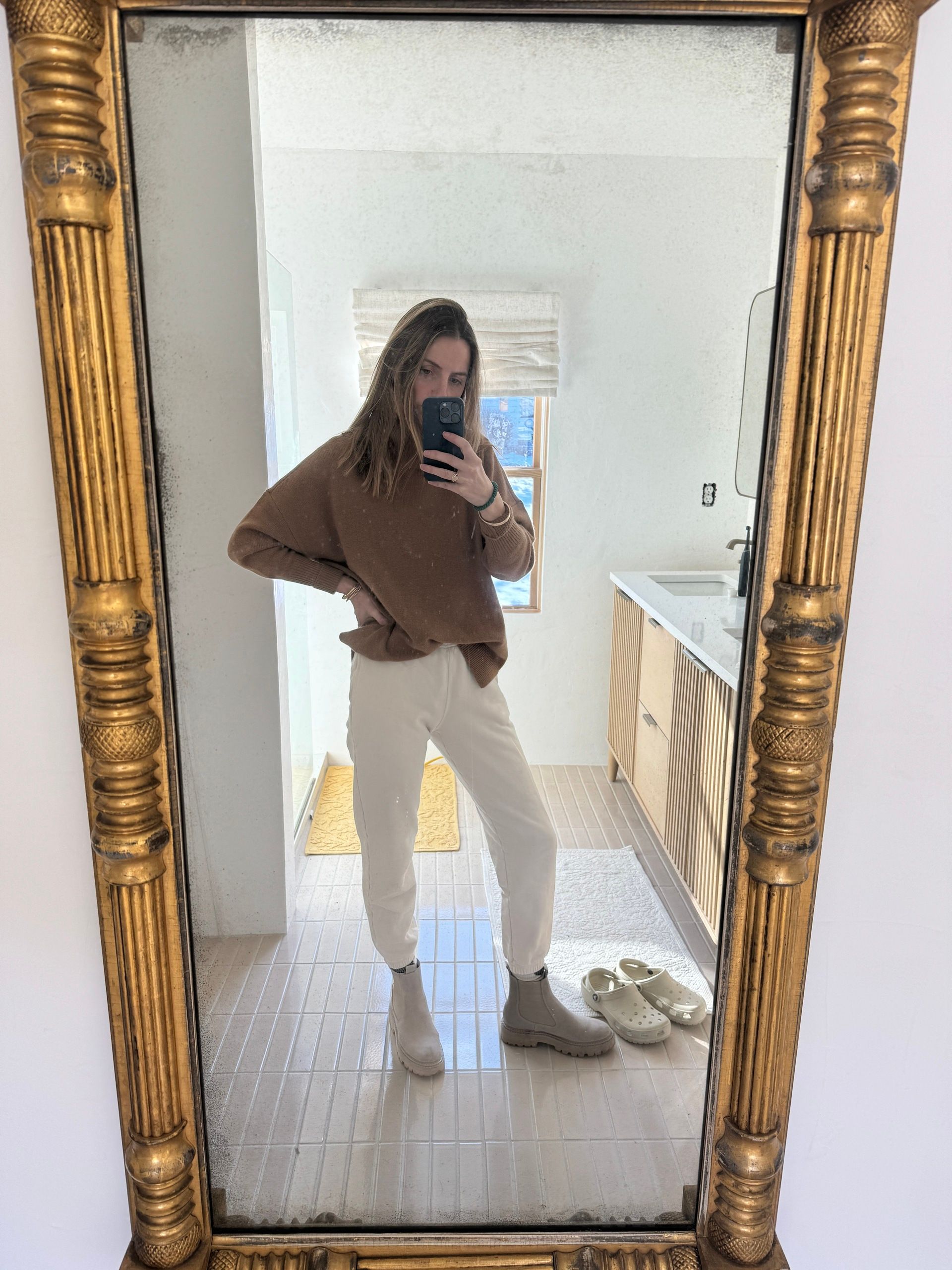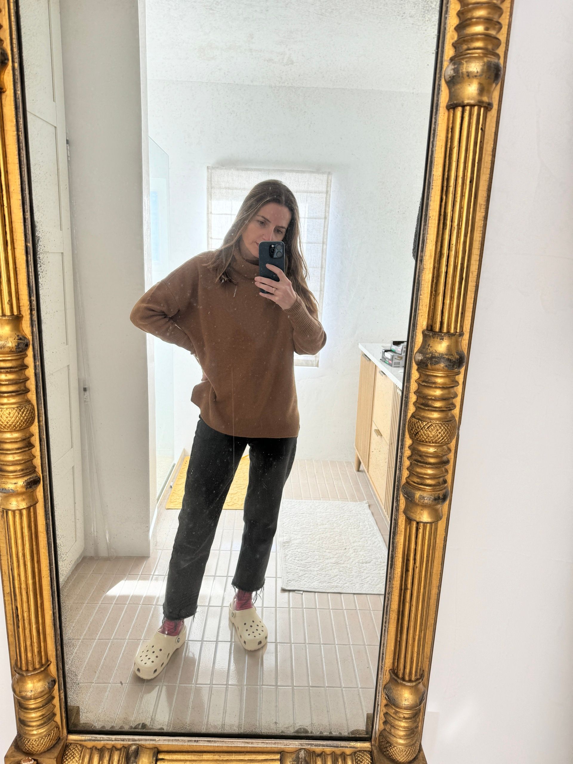 Aritzia Sweater, AGolde Jeans, Smartwool Socks, Crocs (birthday present, I love them 😬)