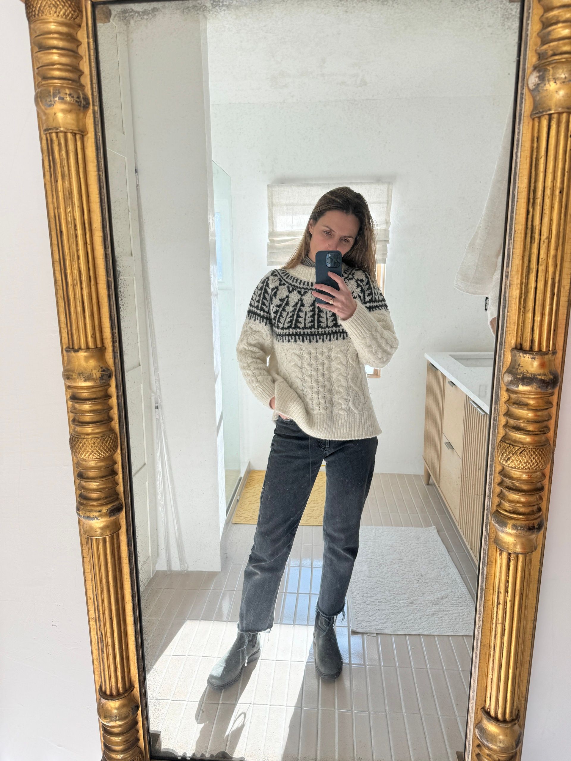 Faherty Sweater, AGolde Jeans (cut them myself), Blundstone Boots, Talbots Turtleneck (old)