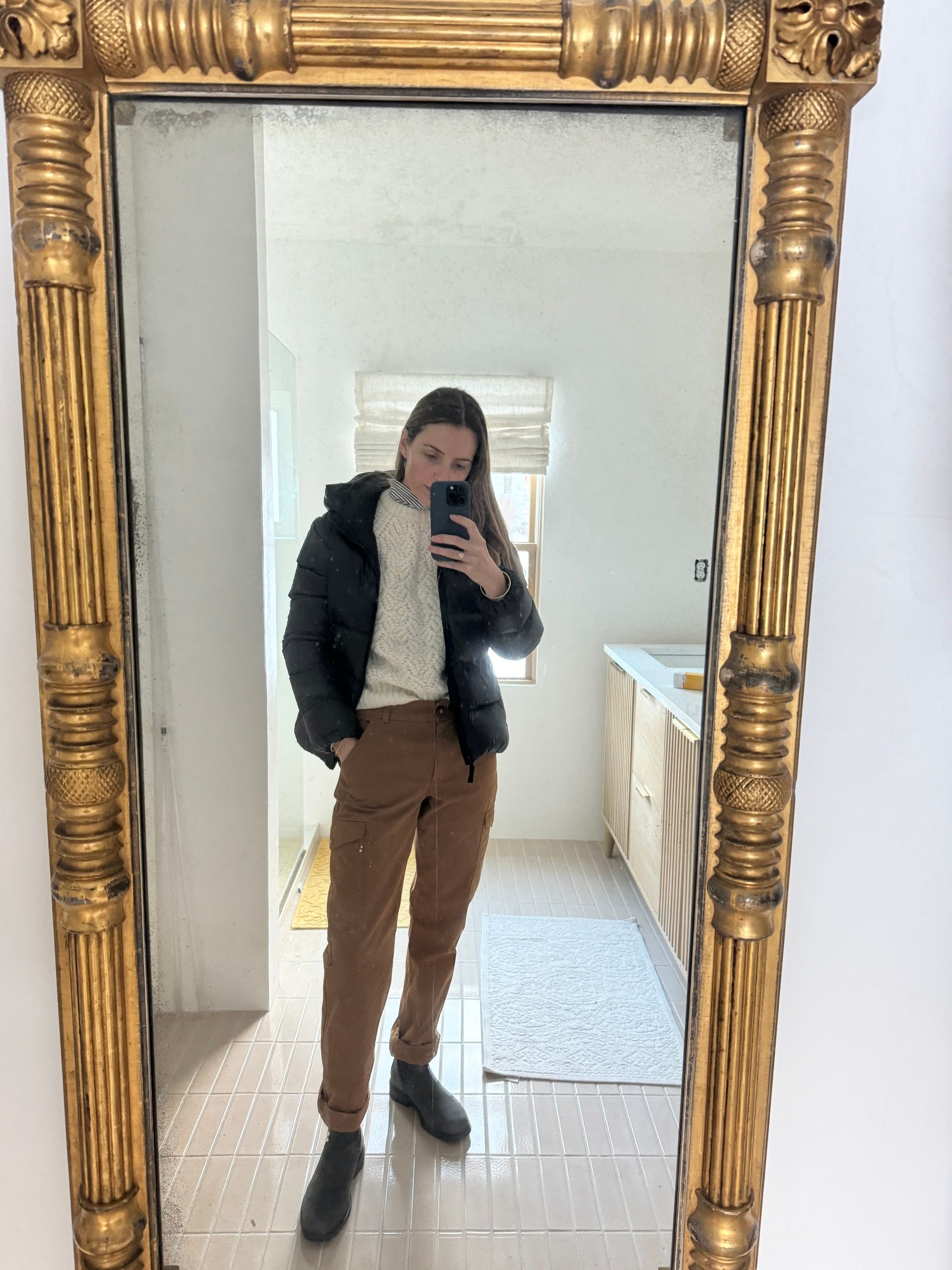 When I wore this outfit Marin said, “Mommy you look like Daddy in those pants.” I’m not sure if it was a compliment, lol. Wearing: Patagonia jacket (old), Sézane sweater (old), Talbots turtleneck (old), Sézane Pants, Blundstone Boots.